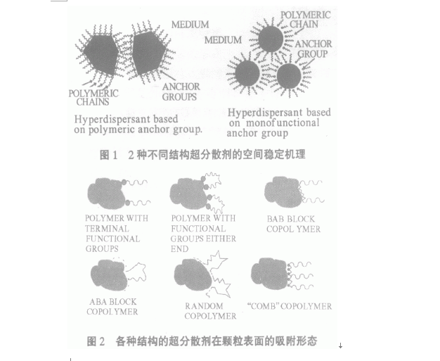 1、超分散劑的結構特征及在顆粒表面的吸附情況